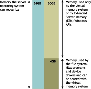 The following illustration shows the amount memory the server can recognize and what portions the virtual memory system uses.