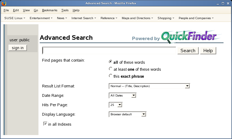Figure 11-1 The QuickFinder Form in a Web Browser