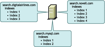 A typical QuickFinder server might have a dozen virtual search servers, each containing several indexes of its own.