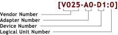 The bracketed letters and numbers at the beginning of each line are the device name. The device name identifies the adapter or device, as follows: