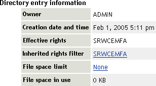 Complete Space Restriction: Select , then specify the directory quota as 0 KB. If the directory already contains files and subdirectories, the directory cannot grow beyond the current space consumed.