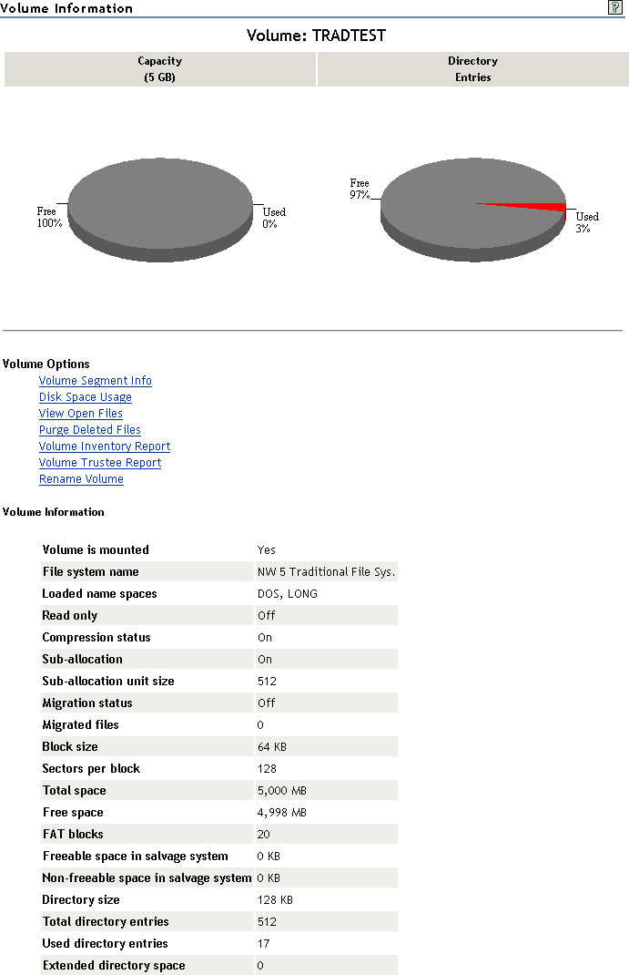 In Novell Remote Manager for NetWare, Click Manage Server > Volumes.