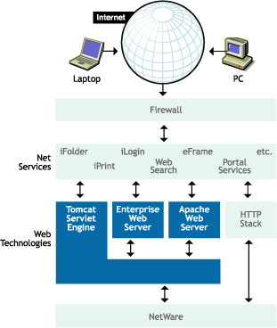 As illustrated in Figure 1, Web technologies provides the infrastructure for the following net services software included in NetWare 6: