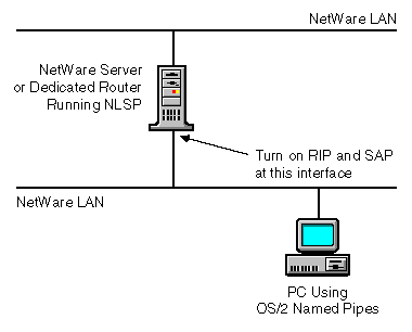 If you are using OS/2 Named Pipes from version 2.01 or earlier of NetWare Client for OS/2 on a LAN connected to one of the network interfaces, you must enable RIP and SAP explicitly on the interface. The OS/2 Named Pipes that is part of NetWare Client for OS/2 version 2.10 or later and Novell ClientTM for OS/2 does not have this requirement.