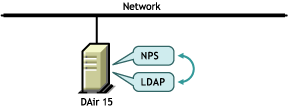 Novell Portal Services (NPS) and LDAP Services are running on the same server DAir15. NPS uses LDAP for communication between NPS and LDAP. Because both servers are running on DAir15, the information (for example, passwords) doesn't travel over the network. Encryption is unnecessary. You check the Allow Clear Text Passwords check box because clear text is faster than encrypted text.