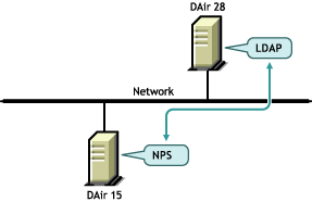 Novell Portal Services is running on server DAir15, and LDAP Services is running on a seperate server, DAir28. NPS uses LDAP for communication between NPS and LDAP. Because the information travels over the network, encryption is necessary. You don't check the Allow Clear Text Passwords check box. The encrypted information is slower than a clear-text connection, but the information is secure.