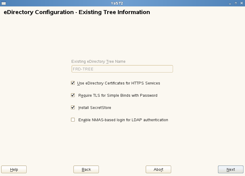 Use eDirectory Certificates for HTTPS Services: Select Use eDirectory certificates for HTTPS Services if you want your OES services that provide HTTPS connectivity to use the more secure eDirectory certificates instead of the self-signed certificates created by YaST.