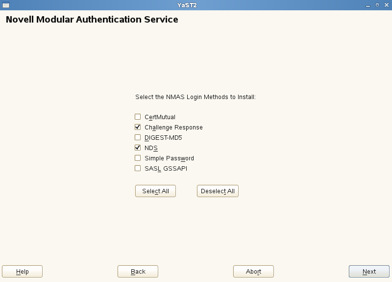 NOTE:The SASL GSSAPI mechanism is an eDirectory-specific SASL mechanism. It is not used on a DSfW server. The DSfW-specific SASL GSSAPI mechanism is extended during DSfW configuration by default.