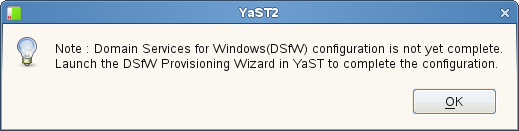 Launch YaST. The DSfW Provisioning Wizard is listed as an option.