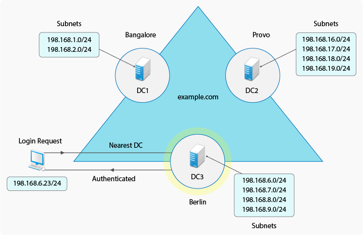 After you configure the sites and subnets feature, when a client tries to log in to a domain, the request goes to the nearest available domain controller, thus ensuring faster domain login.