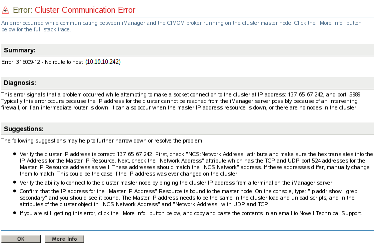 Other possible issues are described in the Cluster Communications Error message (see Figure 16-1).