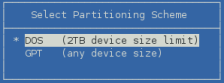 Select the DOS partitioning scheme for the device, then press Enter.
