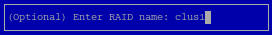 Type the cluster name (such as clus1) for the RAID, then press Enter.