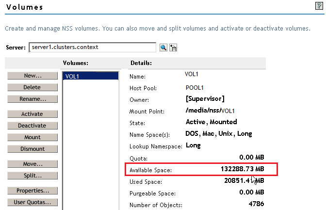 Verify that the LUN is now visible to NSS on the node. In NSSMU, go to the Devices page, then verify that the new LUN is listed.