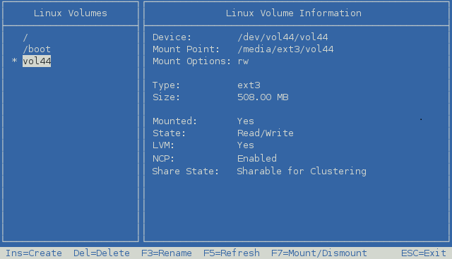 From the NSSMU main menu, select Linux Volumes, then press Enter.