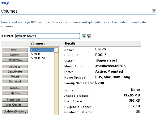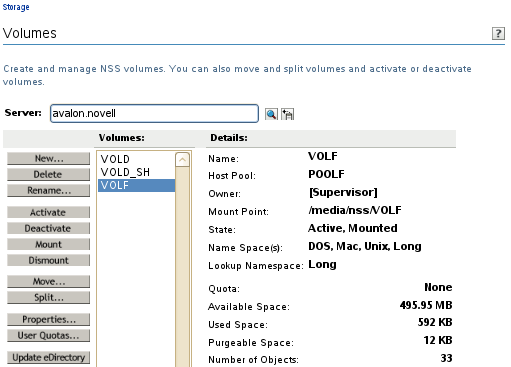 On the Volumes page, select the mounted NSS volume that you want to rename.