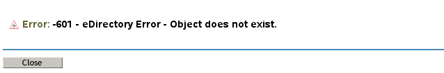 If you try to force the page to refresh before the eDirectory changes have been synchronized, you might get an Error 601 eDirectory error. The error condition is temporary and should not prevent the transaction from completing successfully.