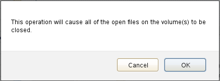 Read the warning message that open files will be closed by the action, then click OK to confirm the dismount.