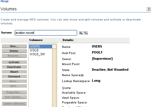 In iManager, select Storage > Volumes.