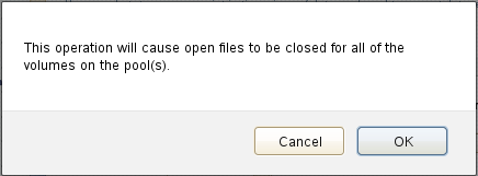 Read the warning message that the pool’s volumes will be dismounted, then click OK to continue.