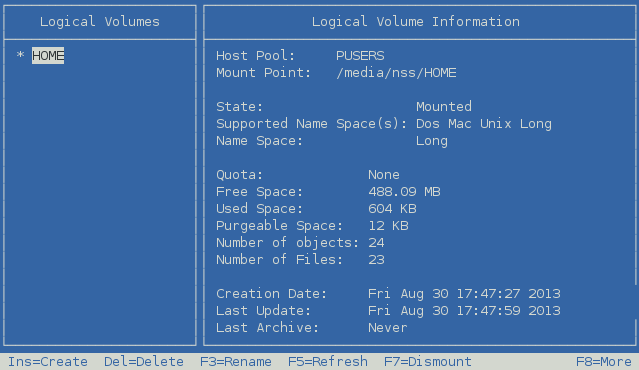 On the Pools page, select the pool that contains the volume you want to rename, then press F7 Activate.
