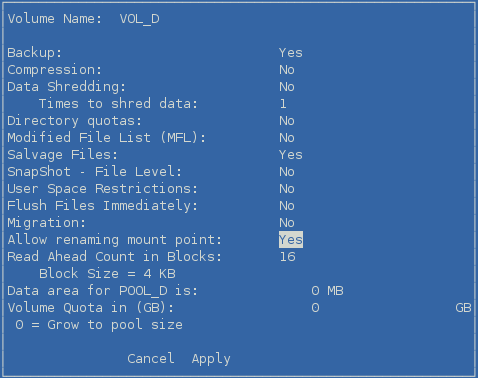 # create the custom mount point path if it does not exist on the node ignore_error mkdir -p /usr/novell/nss/VOL_D
