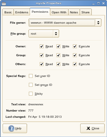 4. In a file browser, view the directory’s properties to verify that the owner was changed.