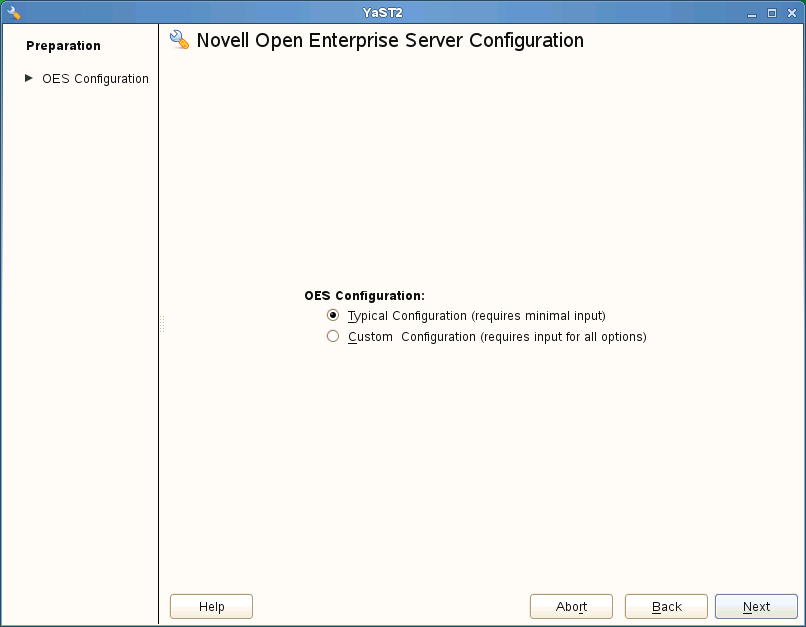 Typical Configuration: A two-click express installation with minimal user inputs. This method collects only essential information to proceed with the OES configuration and uses default values for most options. In case you want to modify the default configuration parameters; in the OES install summary screen, click the respective links and modify them.