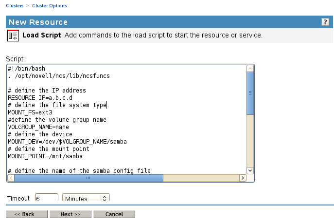 Click Next, then continue with Section 5.5.5, Configuring Samba Load, Unload, and Monitor Scripts.