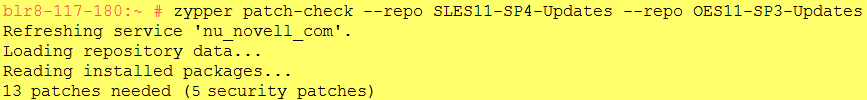 zypper patch-check --repo SLES11-SP4-Updates --repo OES11-SP3-Updates