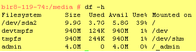 The df -h command lists the device name of the root partition. In the following example, the root partition to write down is /dev/sda2 (mounted as /).