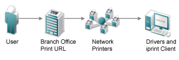 Figure 1-5 How iPrint Helps You Complete Print Jobs at a Remote Office