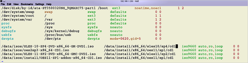 Figure 5-1 Sample fstab Entries for an Installation Server