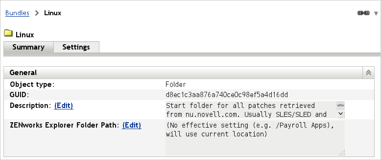 Folders are a main concept in ZENworks Configuration Management in order to organize the administration of different types of objects. Folders are present in nearly every menu page.