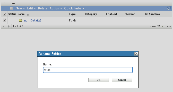 To rename a folder, select the check box to the left of the folder icon and click Edit > Rename.