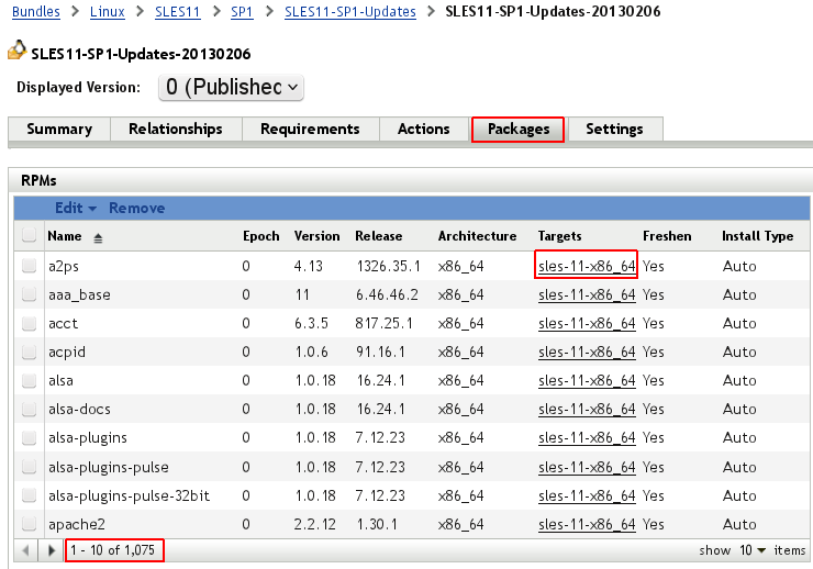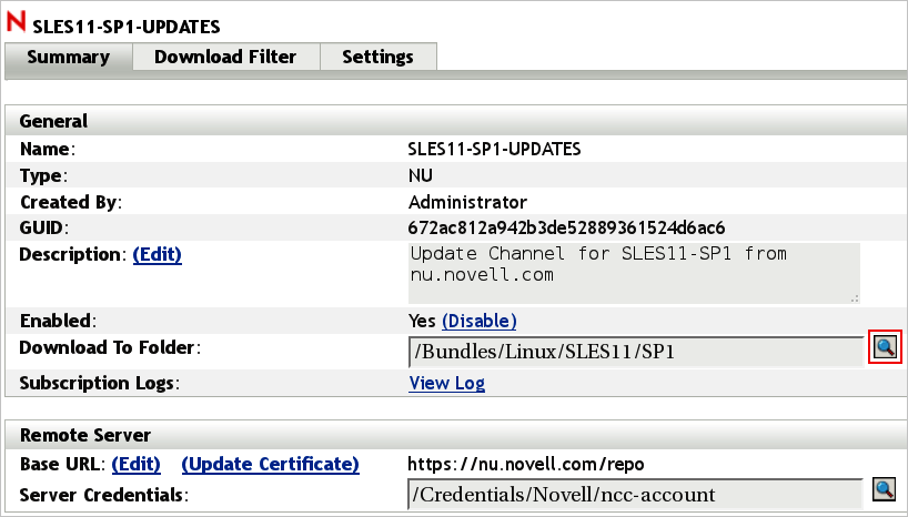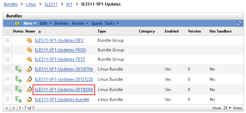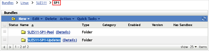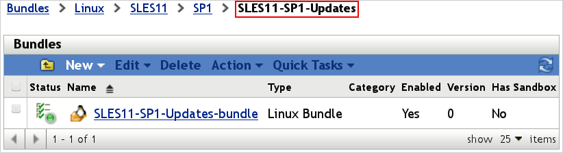 By using this subscription, a mirror automatically creates a SLES11-SP1-Updates folder in the bundle menu below Bundles/Linux/SLES11/SP1 as displayed in the following figure.