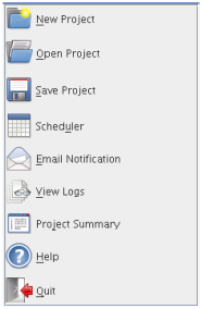 This is the left pane. You use it to access common project options: