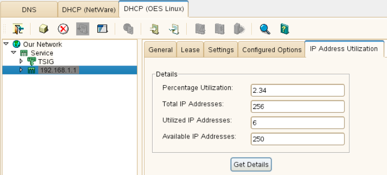 In the DHCP (OES Linux) tab, select the subnet for which you want the utilization details.