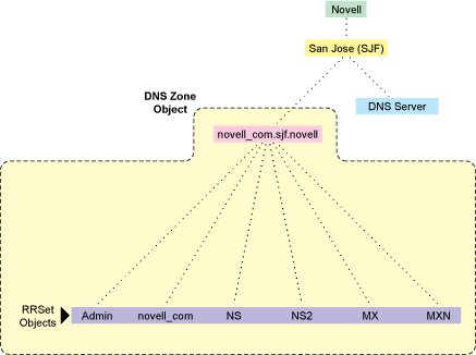 Figure 1-7 shows a representation of eDirectory objects within a DNS zone.