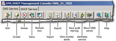 A newly created object's button on the toolbar is context-sensitive in relation to the selected item in either service's left tree pane. Your rights to the DNS objects are not verified until you perform an update, delete, or create against the target objects.