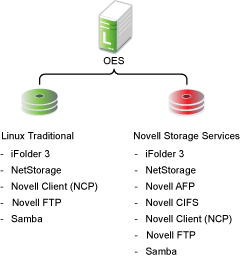 The NCP Server included in OES features emulation of the Novell Trustee Model and inheritance plus visibility when it runs on traditional POSIX file systems such as Ext3, Reiser, and XFS. When it runs on NSS, these capabilities are synchronized with the NSS File system and its extended directory and file attributes, such as Rename Inhibit.