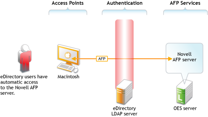 Novell AFP: Provides native Macintosh access to files stored on an NSS volume on an OES server.