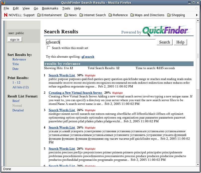 After a query is submitted and results are found, QuickFinder populates a results template with all relevant information for each search result. (See Figure 11-2.)