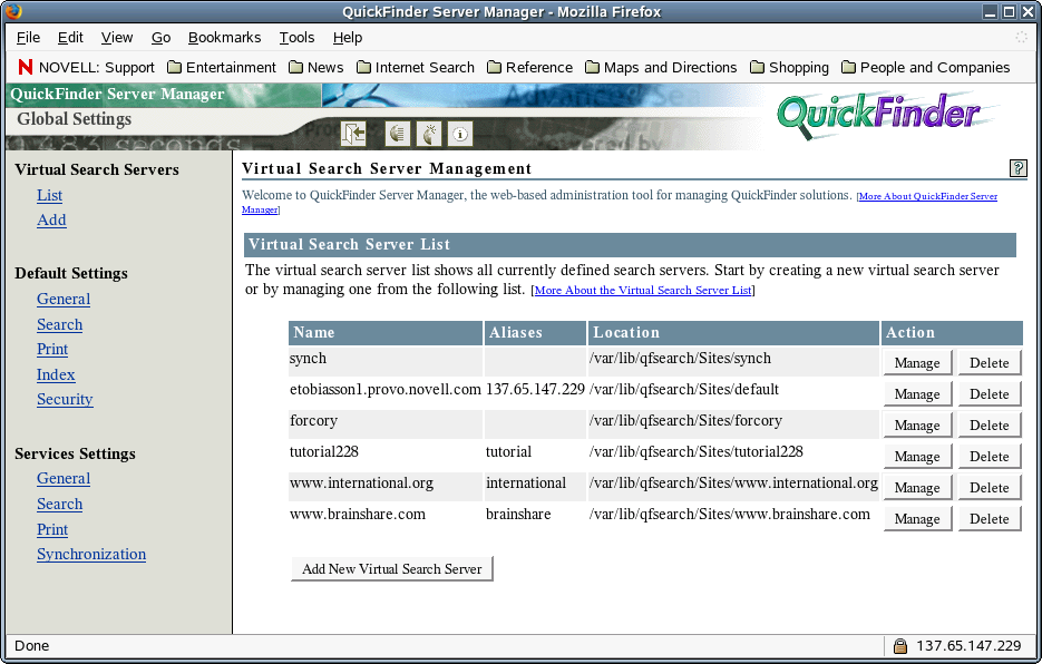 QuickFinder Server Manager is a browser-based utility you use to create and manage all virtual search servers and their indexes on your QuickFinder Server.