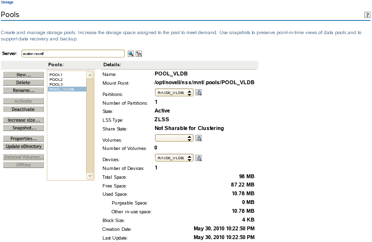For guidelines about naming pools, see Section 5.4, Naming NSS Storage Objects.