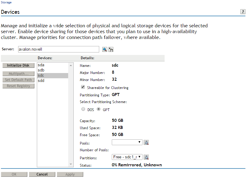In iManager, click Storage > Devices.