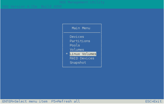 1. From the NSSMU menu, select Linux Volumes, then press Enter.