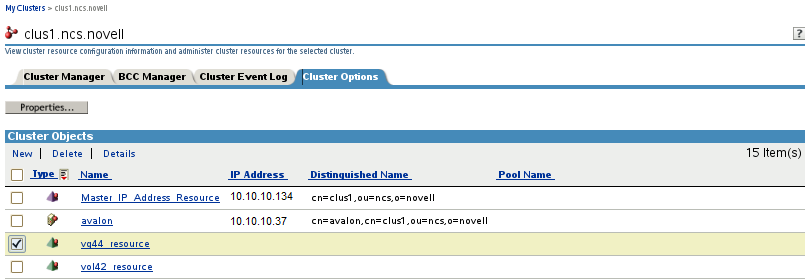 All resource configuration must happen from the master node. On the Cluster Options page for iManager, you are automatically connected to the Cluster object, which is associated with the master node.