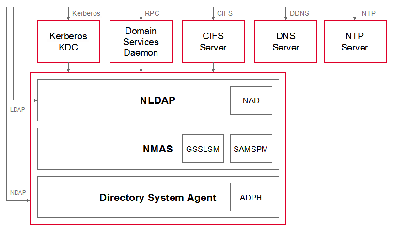 Active Directory Provisioning Handler (ADPH /Directory System Agent): Provides agent-side support for the Active Directory information model, regardless of access protocol. It enforces Active Directory security and information models, allocates Security Identifier (SIDs) to users and groups, validates entries, and enables existing eDirectory users and groups to use Active Directory and RFC 2307 authorization.