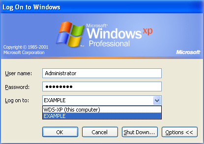 After the Windows workstation has joined the DSfW domain and the computer has been restarted (as explained in Section 11.1, Joining a Windows Workstation to a DSfW Domain), DSfW user accounts can be used to log on to the Windows workstation.
